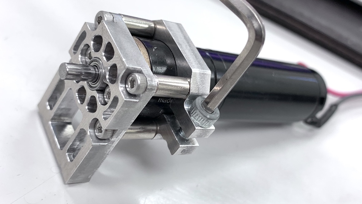 とりあえずお試しで一つモーターの固定機構を作ってみました。サッカーをやってたことがある人はおそらくみたことがあるであろうクランプとねじ止めのハイブリッド機構です。