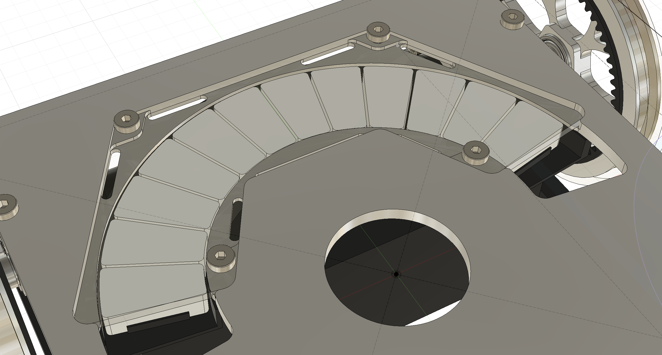 - 軸ギリギリにギヤを設置できるようにネジはジュラルミン部品の中に埋め込んであること