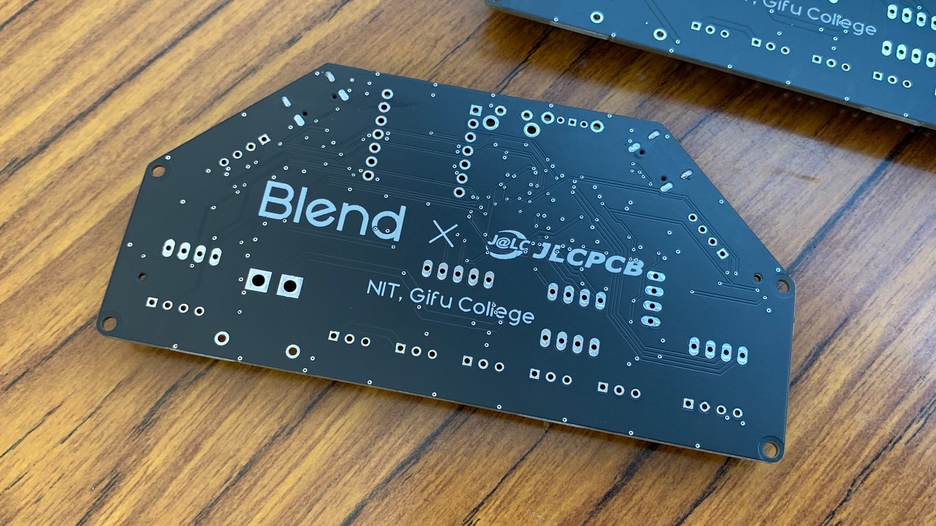 JLCPCBさんのロゴと一緒にBlendのロゴもいれさせてもらいました♪裏は部品がないシンプルな構成になっています。