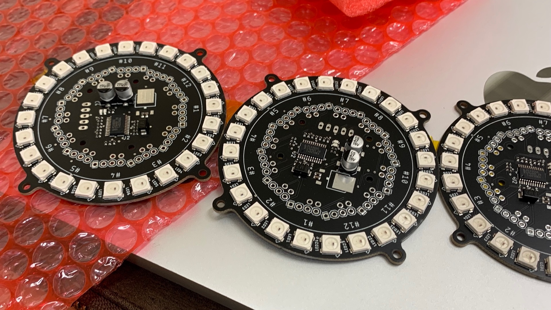 ToFセンサ(VL53L0X)が12個とフルカラーLED(WS2812B)が24個乗った基板です。LED24個は非常にロマンがあります。